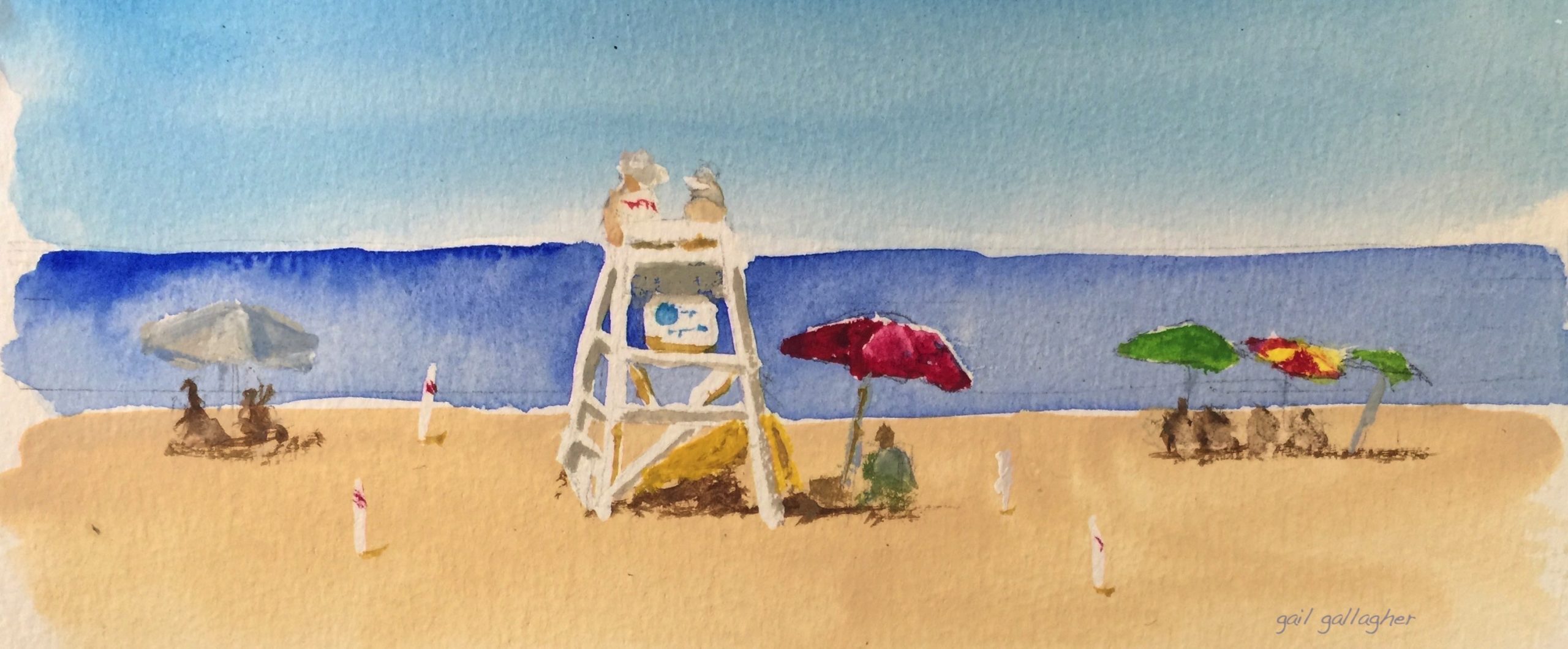 Watercolor on Paper sketch of Long Beach, Sag Harbor life guard chair